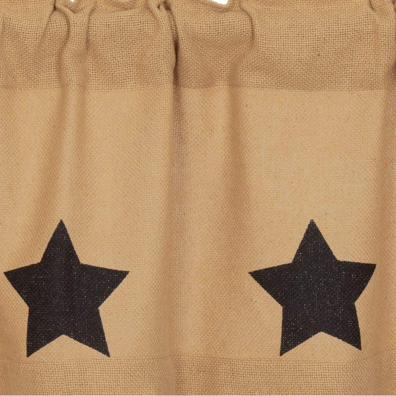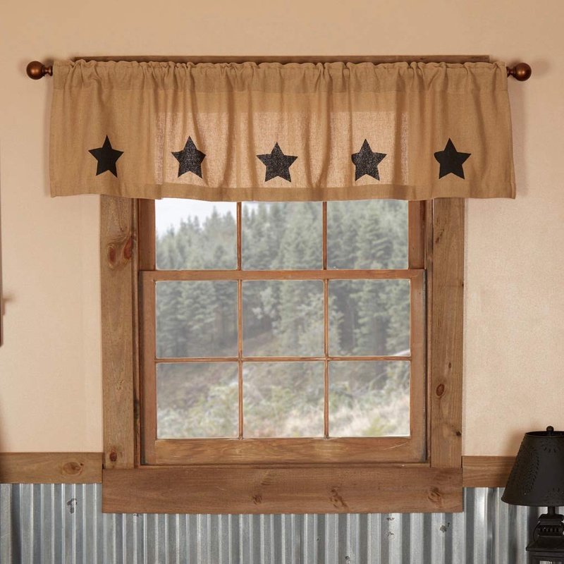 - STENCILED BURLAP: Textured, natural tan burlap adds rustic charm to any window while stenciled stars in rich, country black add extra country style.