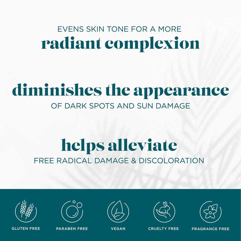 - 10% THD Ascorbate (Vitamin C) - A stable and more efficacious form of Vitamin C that enhances collagen production, defends against free radical damage, and brightens for a more radiant complexion. Also helps shield the skin from UVA/UVB damage.