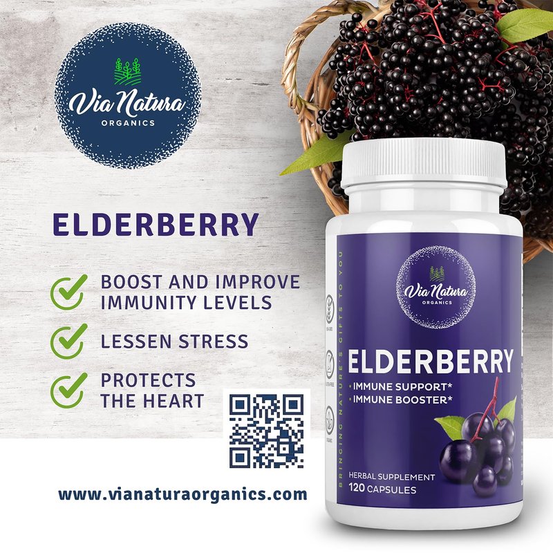 Ingredients: Organic Black Elderberry Count: 120 capsules Product tested in the United States for chemical, physical and microbiology agents by certified Laboratory Packed in the United States using sustainable solutions and local resources. UPC: 195893339372 Manufacturer: Via Natura Organics