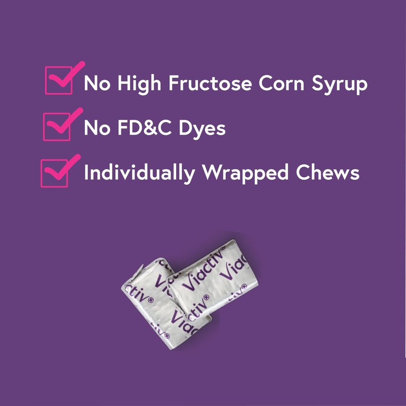 - Calcium and Vitamin D Supplement Chews: Two Viactiv chews a day provides 100 percent of your daily recommended Calcium plus Vitamin D and Vitamin K, with less sugar vs. leading gummy