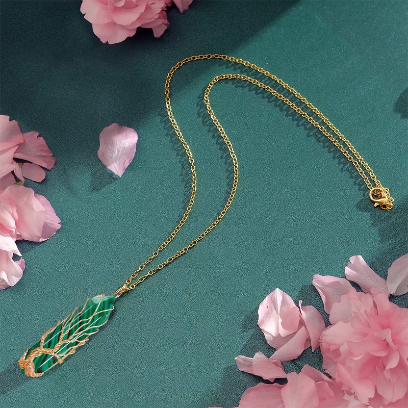 VIBILIA Healing Crystal Necklace Tree of Life Wire Wrapped Malachite Stone Point Pendant Necklace Hexagonal Reiki Spiritual Quartz Gemstone Jewelry for Women Men
