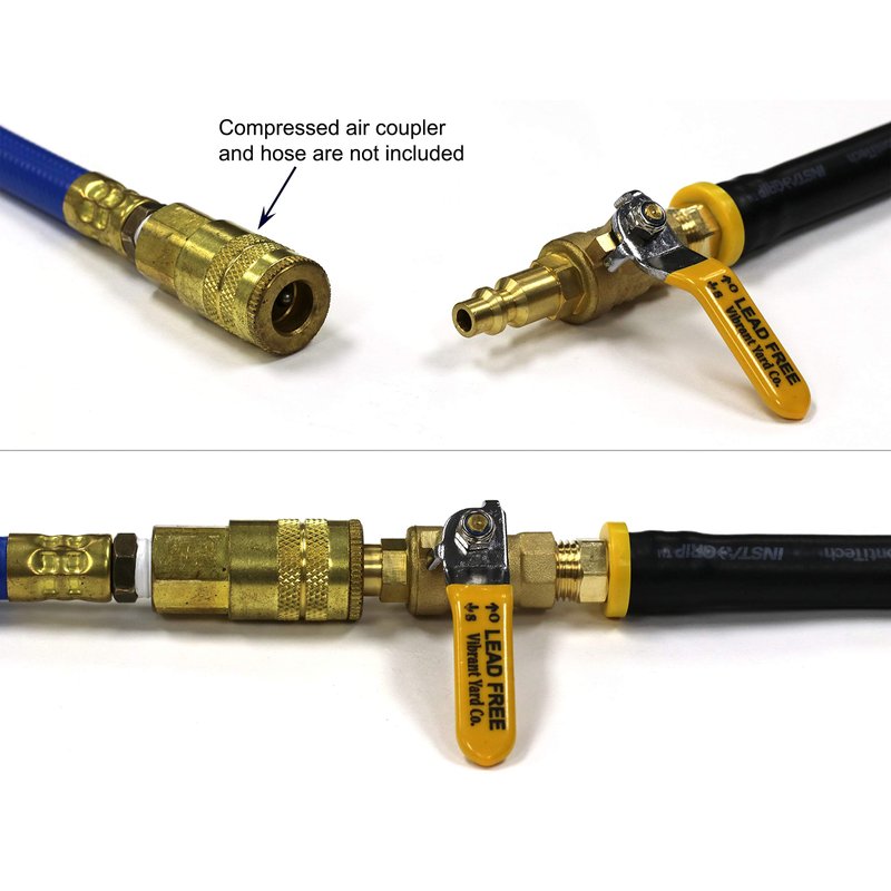 Vibrant Yard Co. LLC Winterize RV, Motorhome, Boat, Camper, and Travel Trailer: Air Compressor Quick-Connect Plug to Male Garden Hose Faucet Blow Out Adapter with Valve (Lead-Free Brass), 10.5" Long