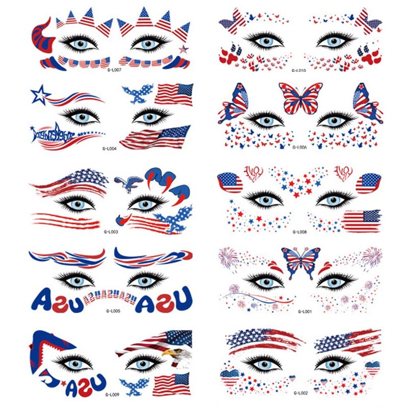 - 【Patriotic Face Tattoo Set】You will get 10 sheets Independence Day temporary tattoos in one package. Each sheet is about 16 x 6.9 cm/6.30 x 2.72 inches. The tattoo stickers are suitable for people of all ages, including children and adults.