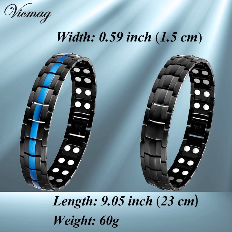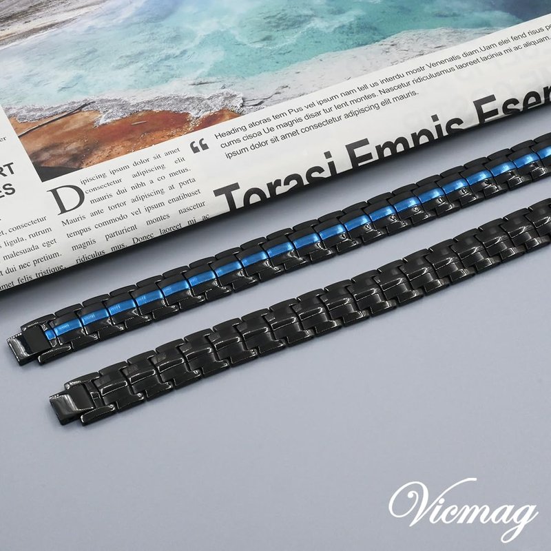 - Ultra Strength Magnetic Bracelet: Expertly crafted from titanium steel, this bracelet features two rows of powerful magnets, making it an excellent choice for those seeking the benefits of magnetic care. Designed to be worn snugly around the wrist, an area frequently in use and requiring care, it provides straightforward yet highly effective wrist protection.
