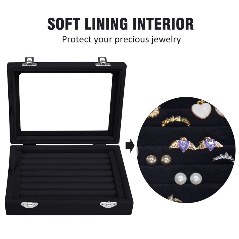 Vicoter Rings Organizer Tray 7 Slots Velvet Jewelry Earring Storage Box with Transparent lid Jewelry Display Case for Girls Wife Mom Women (Black)