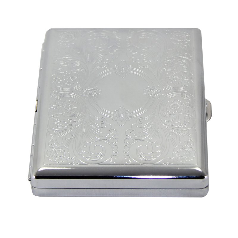 This is a very popular metallic silver color classic design cigarette case. Sleek, double sided and crush proof. It can hold up to 20 king size cigarette, the regular 70s or the long 100s.