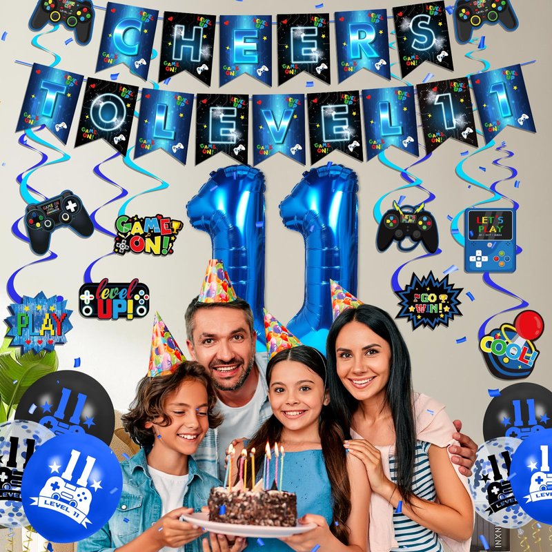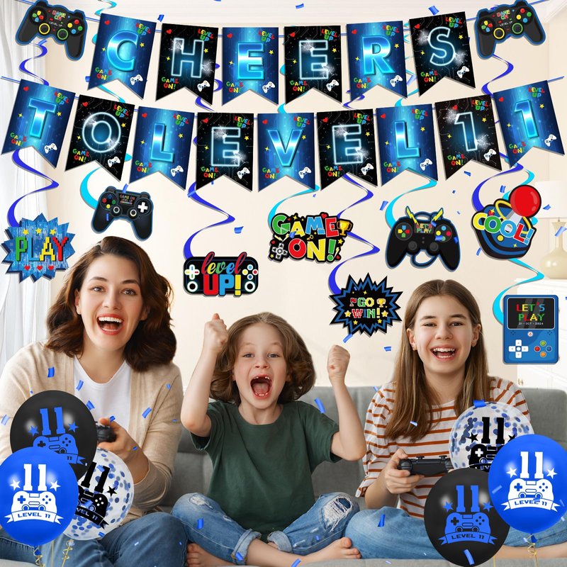 - 【Easy to Assemble】: An easy and quick way to start your 11th birthday party. All you need to do is put the video game hanging card with hanging swirls streamers, take a few minutes to put hanging swirls together with plastic hooks, Then string the LEVEL 11 Pre-Strung banner with ribbons, and you can hang them up