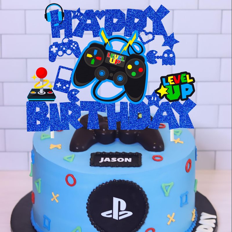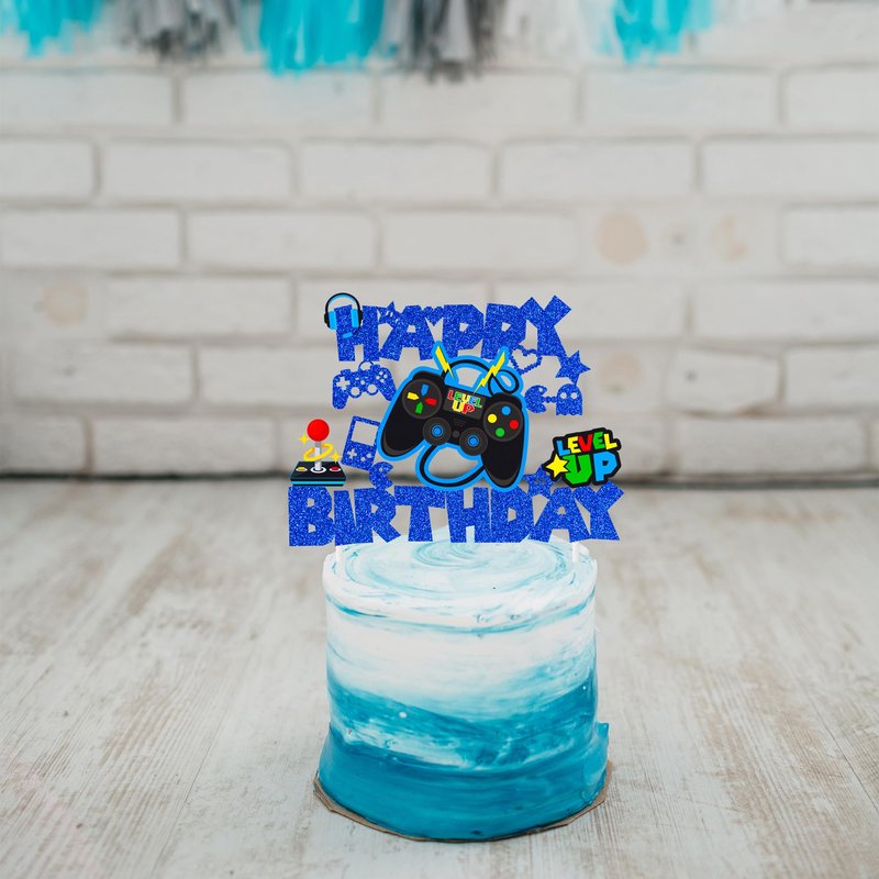 - ❤【Game on controllers gamepad cake decoration】The attractive enough game on controllers gamepad cake decoration, a exquisite game controller and other game theme patterns are clearly printed on this cake topper, with blue glittering "Happy Birthday" letters, novel design and exquisite production process, make your figure gaming themed birthday party more cool and attractive.