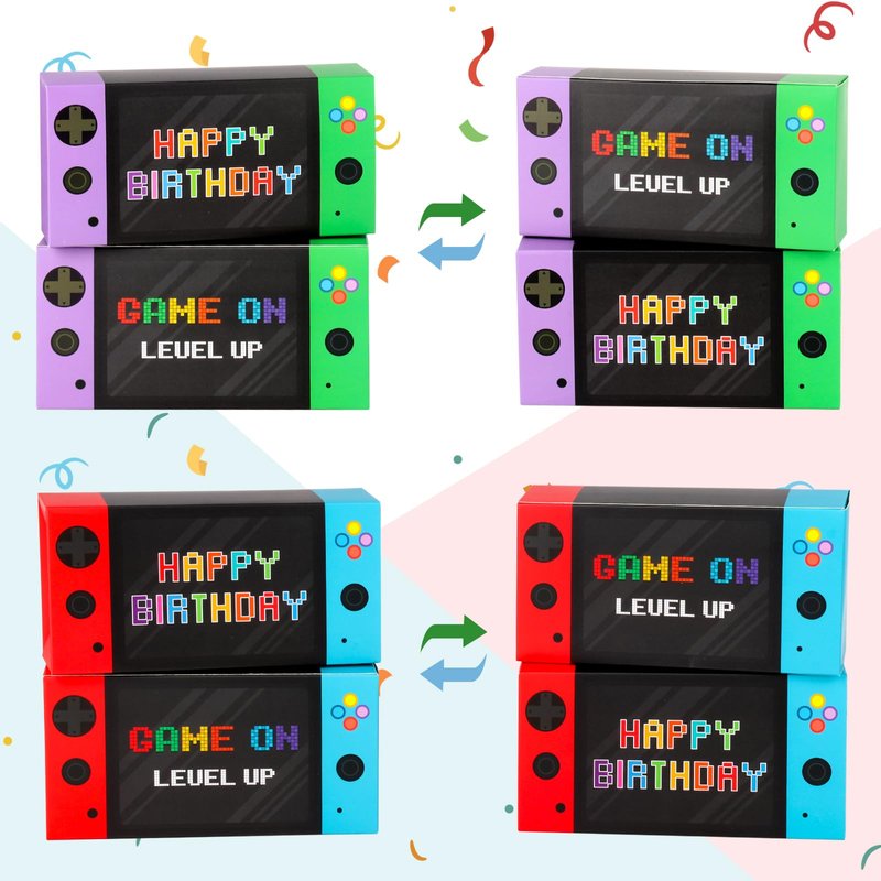 - 🎮Game Themed Party Supplies, our video game party gift boxes come in two different colour designs, 8 each, 16 handle shaped candy gift boxes in total, enough for your daily life or festivals, and can also be paired with a variety of different children's parties for kids to love, an excellent addition to any game themed celebration