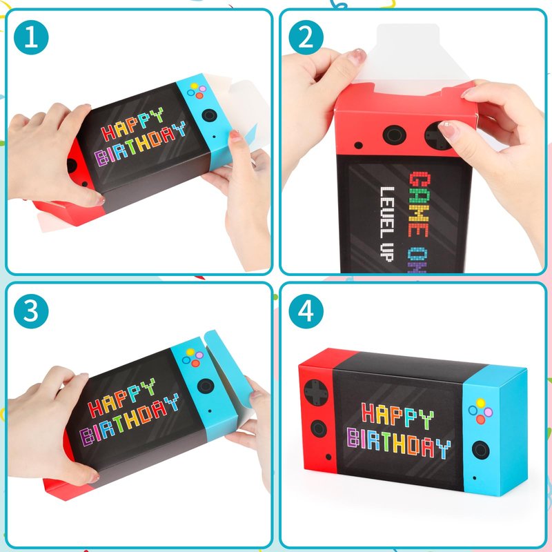 - 🎮Video game themed design, each gift box printed by the video game controller pattern, full of game elements, cool and stylish, this is a party gift box specially for game fans. The gift box has plenty of space for candies, small toys and favours, just fold the labels to complete the assembly, with the video game theme party, boys birthday party decorations, the design is very visually appealing, wonderful game theme design, create a joyful party atmosphere