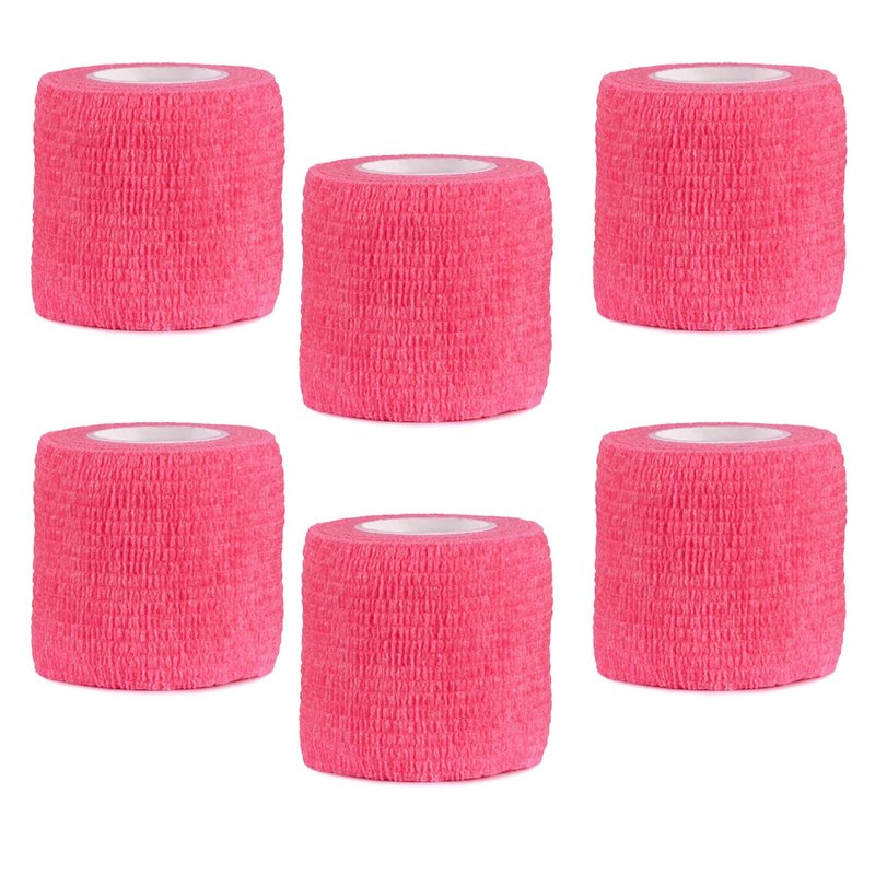 VideoPUP Tattoo Grip Cover Wrap,6pcs Phosphor Pink Disposable Cohesive Tattoo Grip Cover Elastic Bandage Handle Grip Tube for Tattoo Machine Tattoo Grip Accessories