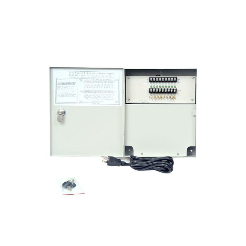 - Package Includes: 9 ports 12V DC power box; 6ft AC Power Cord; Key lock