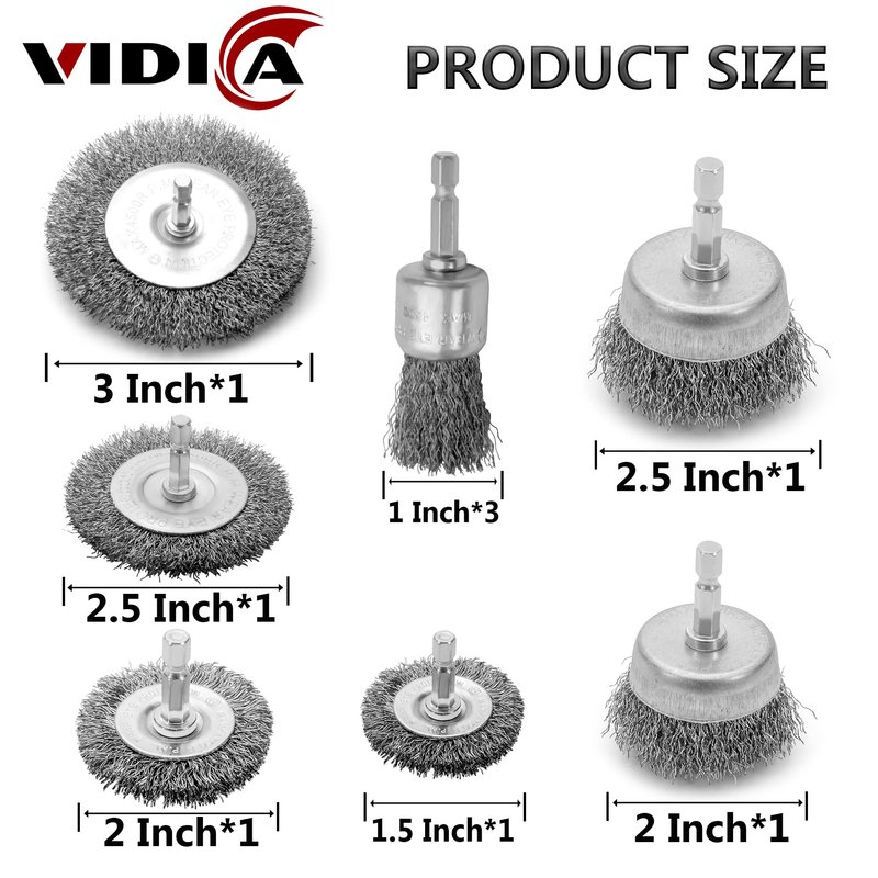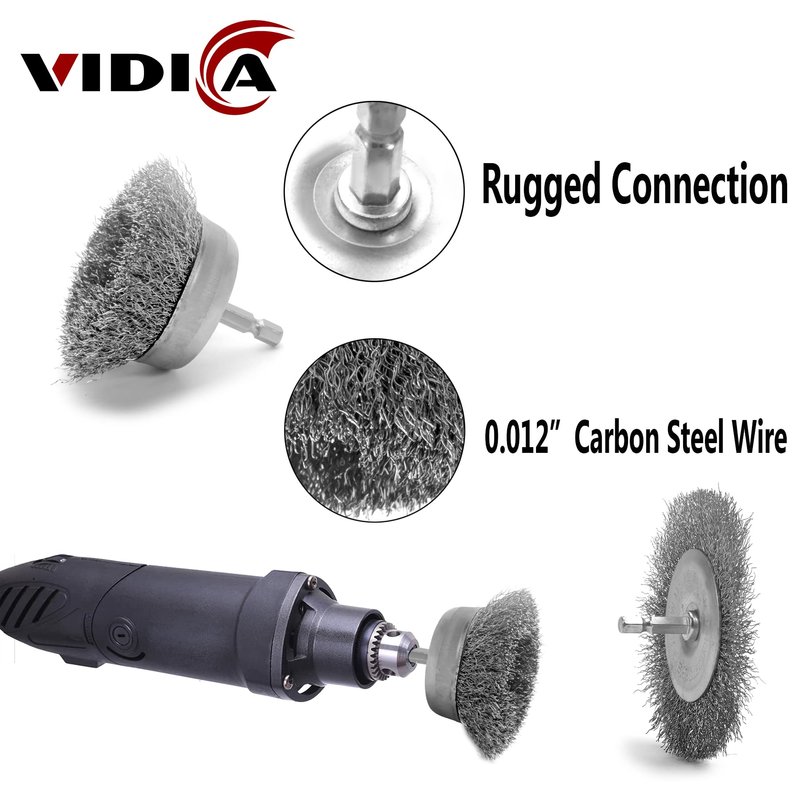 VIDICA Wire Brush for Drill Set 9Pcs,Abrasive Wire Wheel for 1/4 Inch Hex Shank, Wire Cup Brush for Drill, Coarse Crimped Carbon Steel Wire Brush Set for Removing Paint and Rust