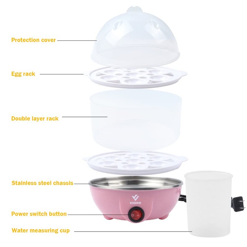VIGIND Egg Cooker,350W Rapid Electric Egg Maker,Egg Steamer,Egg Boiler,Egg Cookers With Automatic Shut Off,14 Egg Capacity Double-Layer Lazy Egg Boiler,Multifunction Heated Milk,Heated Food