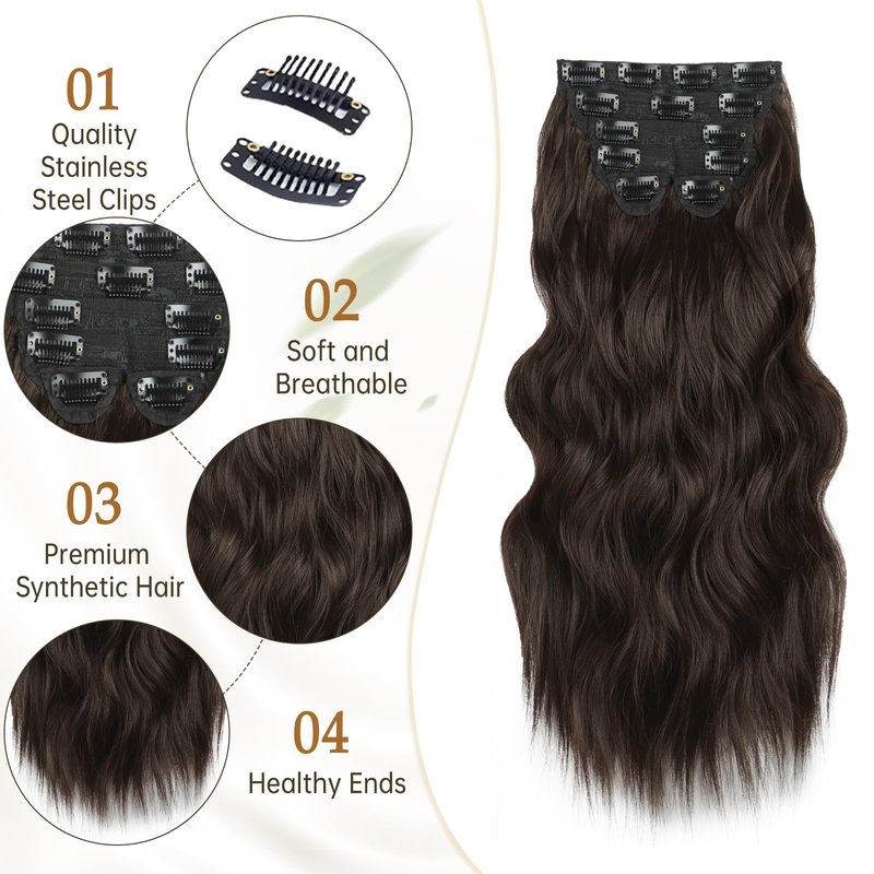 Vigorous Clip in Hair Extensions 20Inch Dark Brown Hair Extensions Clip Ins 6Pcs Long Wavy Soft Synthetic Hairpieces for Women(Dark Brown)