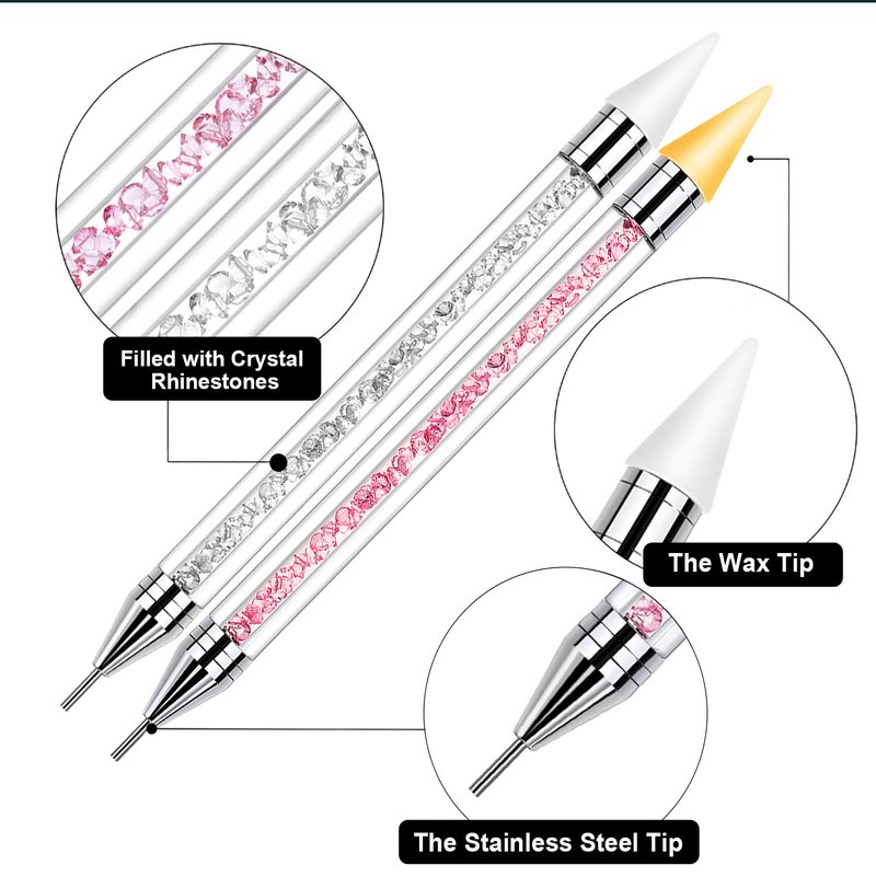 - Dual-end rhinestone picker: the adhesive wax tip is for pickup rhinestones and the stainless steel tip move them to proper nail surface positions. meet with all your diy nail crafts needs.