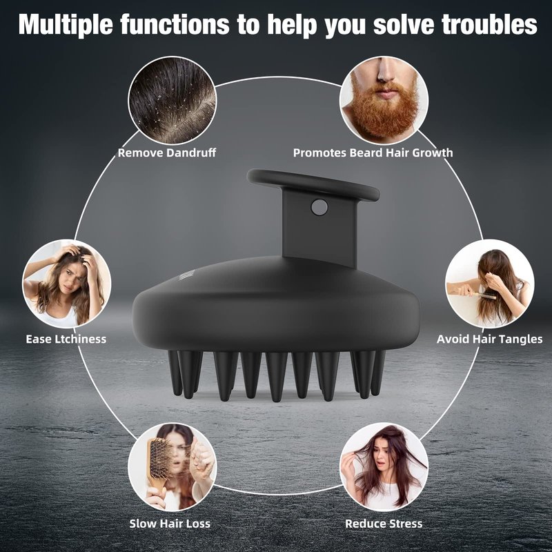 A Must-Have Scalp Massager Hair Brush for Your Beard Routine Why Choose Our Scalp Massager Shampoo Brush? 1. Our hair brush is made of 100% food-grade silicone material, designed to last. 2. Ergonomic design handle fits your palm perfectly, both your left and right hands can easy to hold the wet brush in the shower. 3. Soft silicone bristles perfectly replace the finger operation, protect your long nails and sensitive scalp skin effectively. 4. The hair brush can easy to create richer foam in the shower, which can help you save more shampoo and conditioner. 5. Working well with all beards and hairstyles, such as thick or fine, curly or straight, long or short, and wet or dry hair, the scalp scrubber can meet your needs.