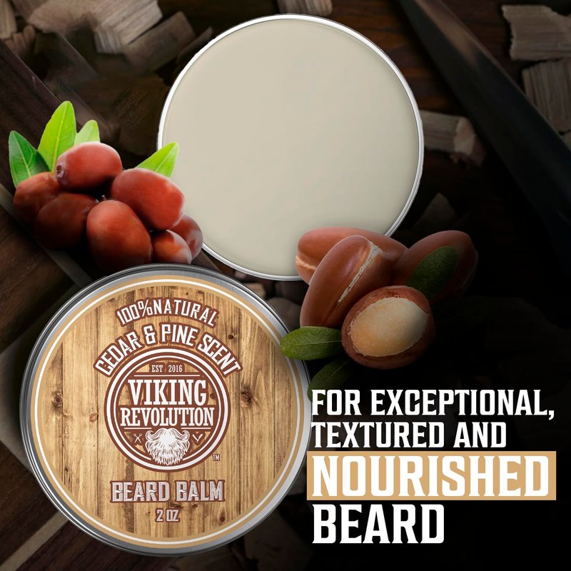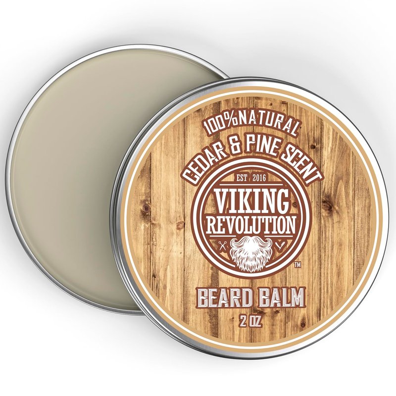 Viking Revolution Beard Balm Cedar & Pine Scent w/Argan & Jojoba Oils - Styles, Strengthens & Softens Beards & Mustaches - Leave in Conditioner Wax for Men