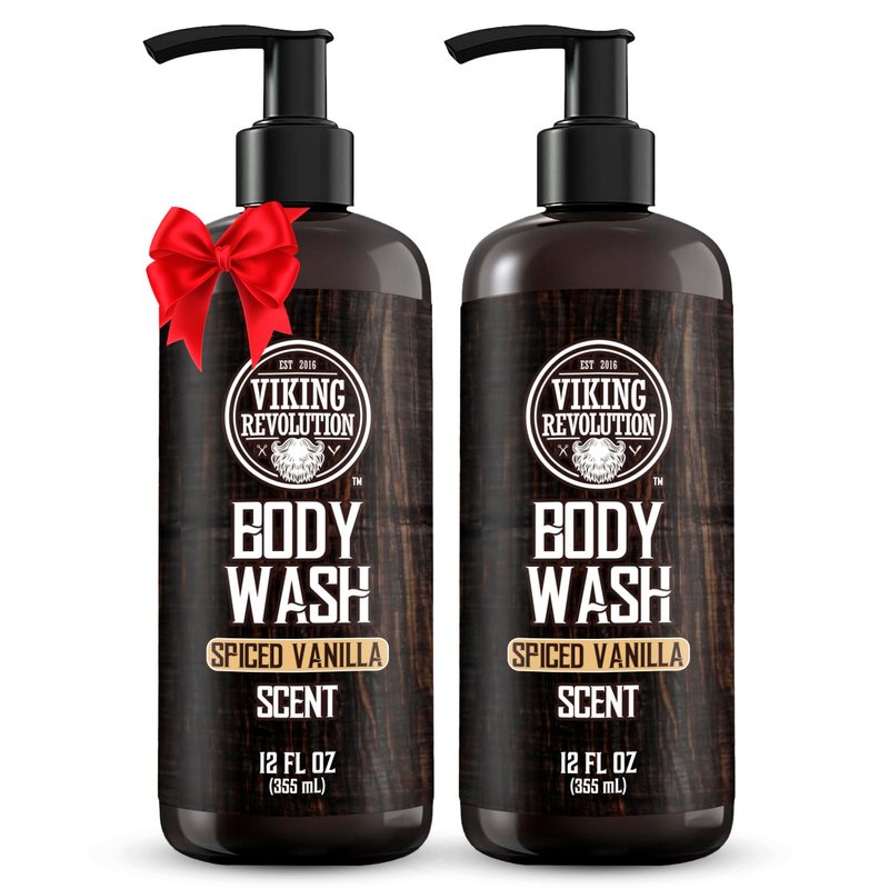 Viking Revolution Men's Body Wash - Spiced Vanilla Mens Body Wash - Mens Natural Body Wash for Men with Vitamin E and Rosemary Oil - Shower Gel Body Wash Men (12 Fl Oz, Pack of 2)