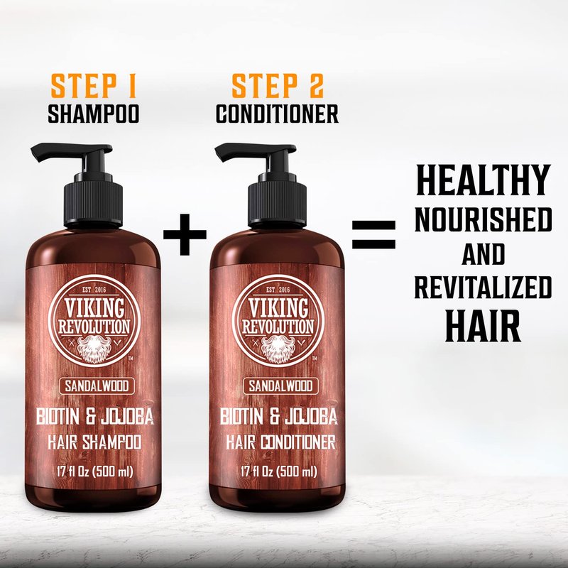 Viking Revolution Sandalwood Men's Shampoo with Biotin and Jojoba Oil - Men Shampoo Natural Hair Shampoo for Men with Vitamin B5 - Hair Loss Shampoo for Mens Shampoo for Thinning Hair (17 Oz)