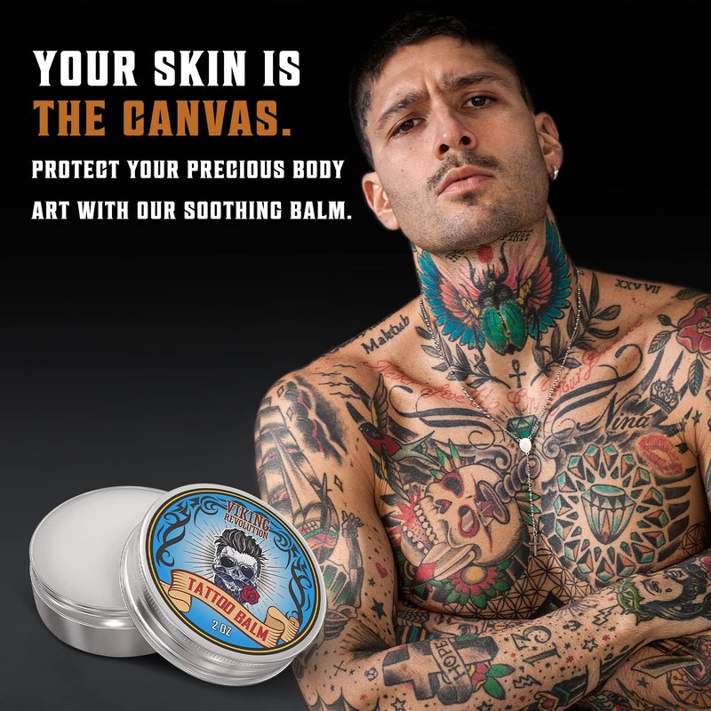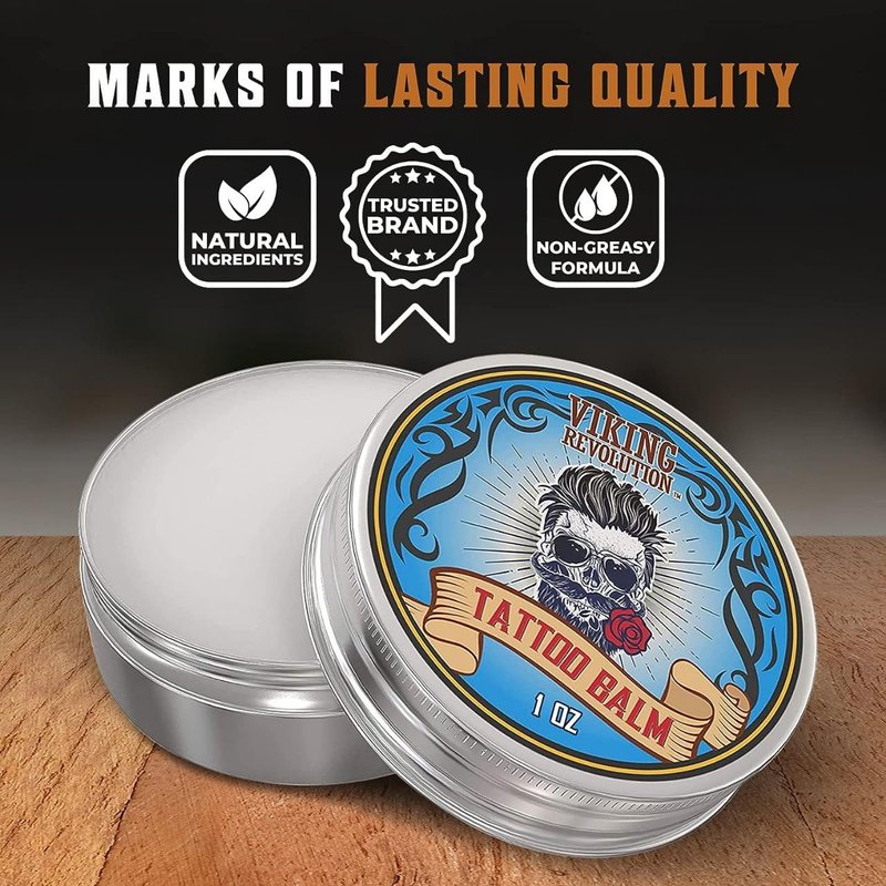 Viking Revolution Tattoo Care Balm for Before, During & Post Tattoo Safe, Natural Tattoo Aftercare Cream Moisturizing Lotion to Promote Skin Healing, Skin Moisturizer, (2oz,1 Pack)