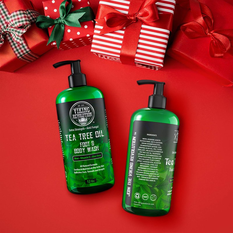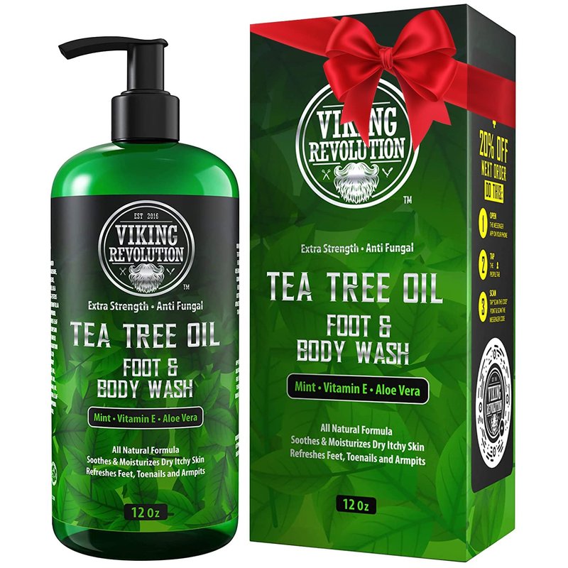 Viking Revolution Tea Tree Body Wash Soap for Men - Helps Athlete's Foot, Jock Itch, Eczema & Body Odors - Extra Strength Tea Tree Oil Men's Body and Foot Wash