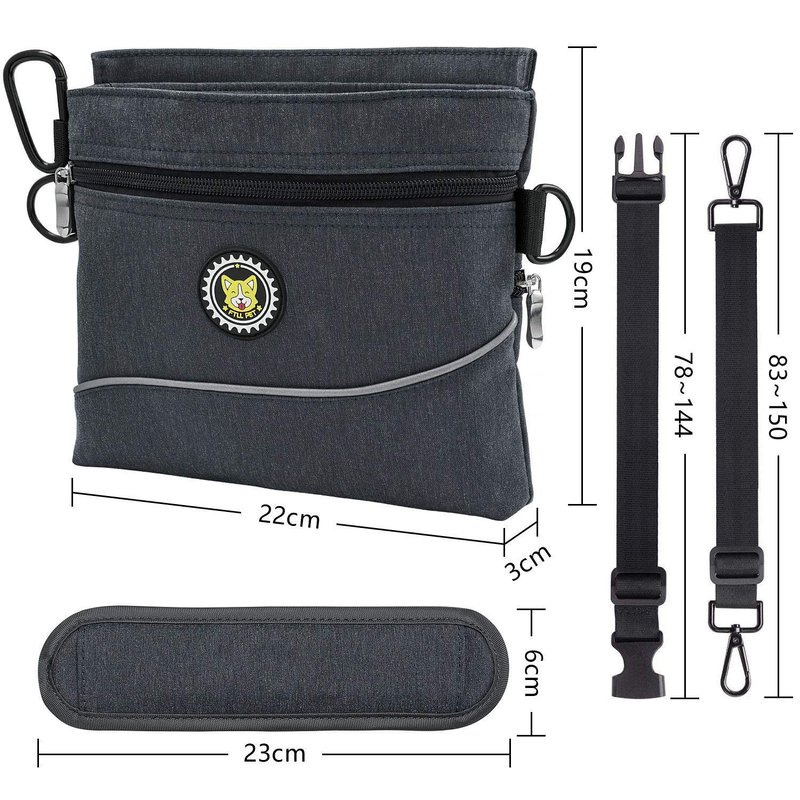 Viklluyr Dog Treat Pouch Bag with Magnetic Closure, 2 Zip Pockets, Dog Food Bag with Removable Inner Pocket, Padded Shoulder Strap, Perfect Food Bag for Agility Training - Including Carabiner