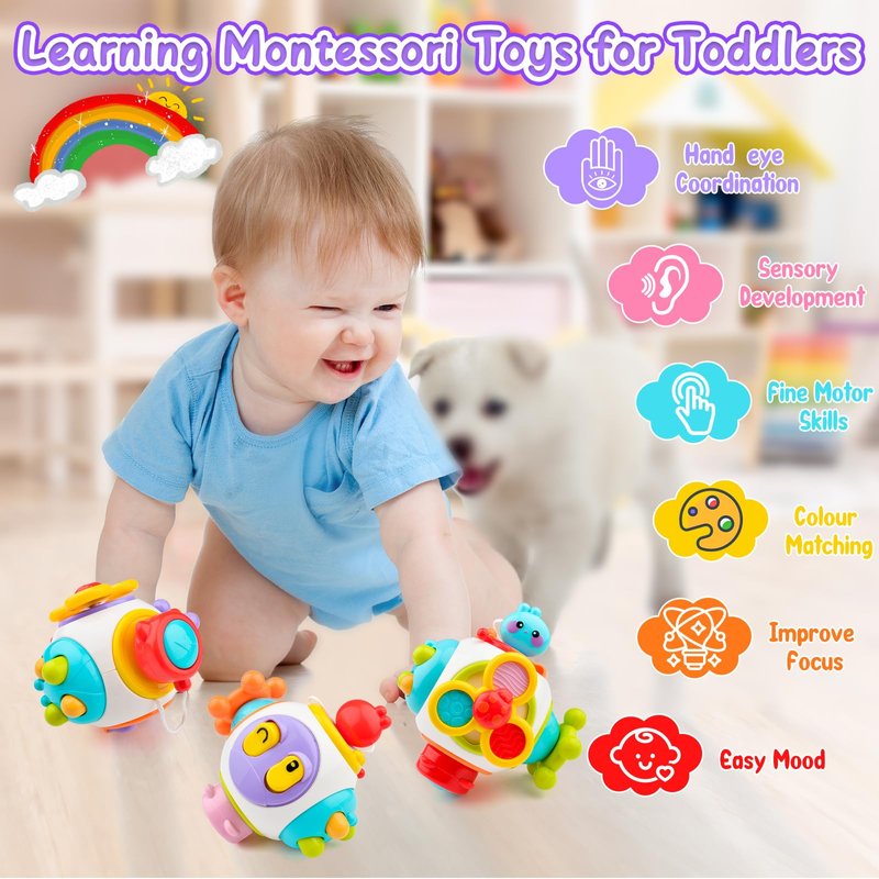 - Sensory Fidgets Toys for Kids:Bright and vibrant color combinations, different shapes, touch and sound provide sensory stimulation. It is conducive to stimulating the baby's sensory development and imagination, improve color recognition and encourage the development of fine motor skills and hand-eye coordination