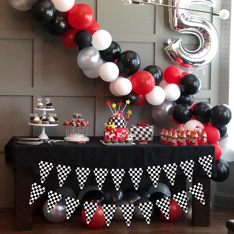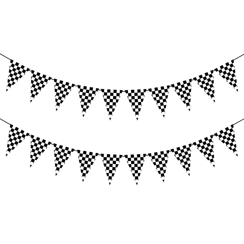 - Package includes 2pcs checkered pennant banner in classic black and white grid pattern, matching well with the racing theme, pre-strung and distance adjustable that you can space them easily to the perfect site you like.