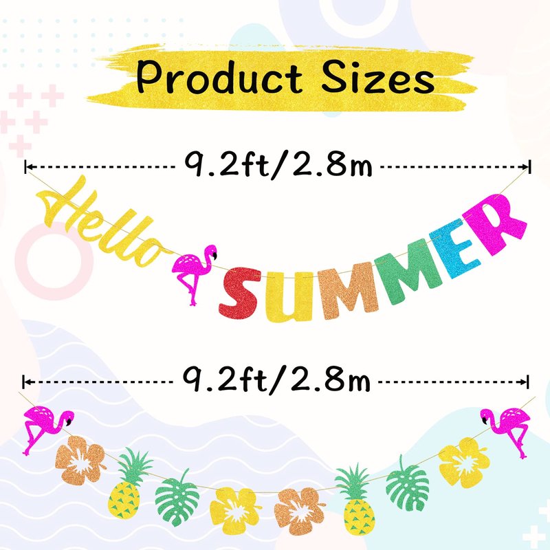 - The hello summer decorations come with 1pc pre-strung hello summer banner in two separate strands, colorful hello summer banner with flamingo, with Hawaiian tropical theme garland, it will leave a deep impression to you and your guests.