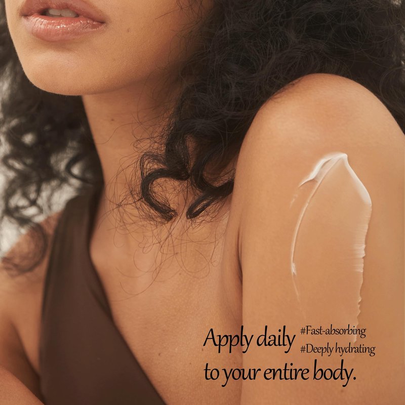 A body lotion with 12% glycolic acid and hyaluronic acid to remove dead skin cells and keep moisture for soft and hydrated skin.