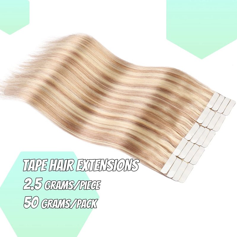 - Hair Extensions Tape in Specification: 2.5g per pcs, 20 pcs per set, 50 g per pack, recommend 2-3 packs for a full head. Tape in hair extensions are relatively easy to apply, making them a convenient option for those looking to enhance their hair without a lot of hassle