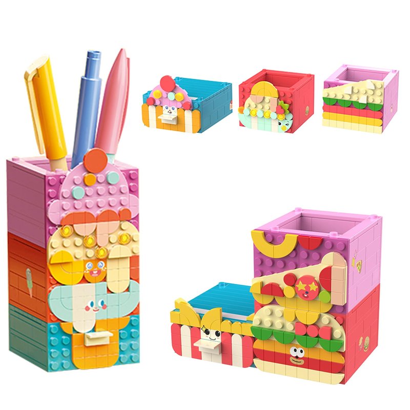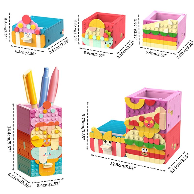 Vinbosion Building Blocks Set,3 in 1 Pen Holder Building Blocks Toy,Creative Building Blocks Model Gift for Kids and Adults Stackable Drawer Design: This building blocks set includes 400+ pieces.3 different model combinations to build: ice cream pen holder,hamburger drawer,desserts drawer.Come with detailed instructions and DIY decoration stickers.Design your own drawer as you want.It can provide hours of building fun,develop spatial imagination. Colourful Decoration: Featured with warm and bright colour,reduce the stress for building.Combine building blocks and storage for space saving.After the construction is completed,it is a good decoration for the office,bedroom or living room. Ideal Gift: Suitable for people over eight years old.It is a good gift choice on the Christmas,Birthday or New Year. Good Material: Made of premium ABS plastic,non-toxic,no strong odour.Come with detailed instruction,the building toy is easy to mix and match as you want.Compactness between each blocks make it able to withstand the stress and impact of building and playing.Keep the building set stable. Missing Part Support: The building blocks are divided into several packs according to steps or parts.Follow the instruction and open corresponding packs can help you to find the correct blocks.If you find missing blocks while building,please feel free to contact us,we will resend the missing parts to you.