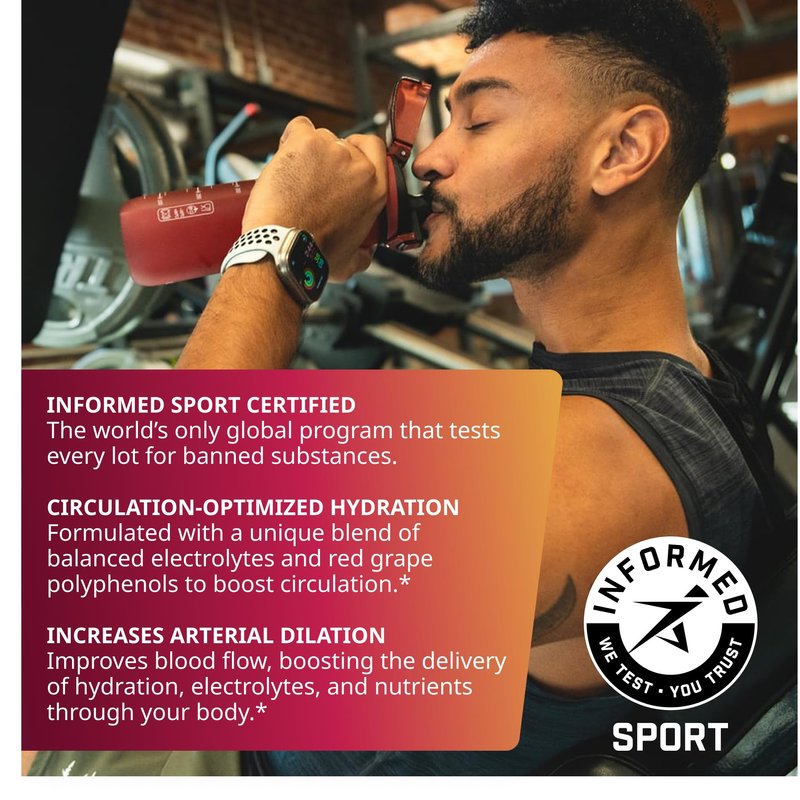 - CIRCULATION-OPTIMIZED HYDRATION: Premium electrolytes and clinically studied red grape polyphenols work together to improve blood flow, enhancing how electrolytes and nutrients move throughout your tissues, organs, muscles, and cells.