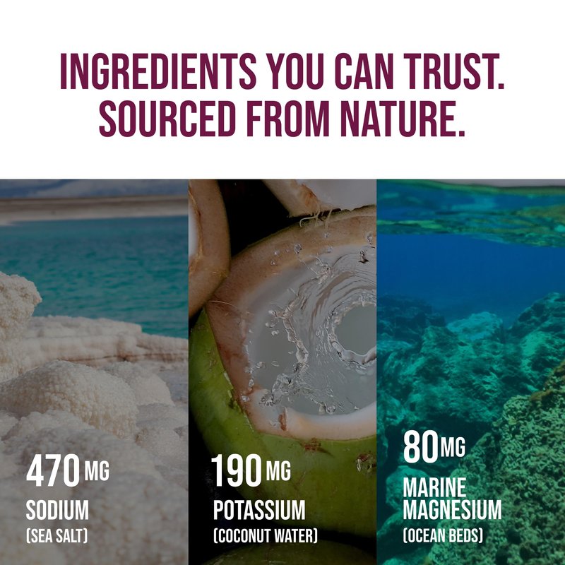 - ONE-OF-A-KIND 2-IN-1 FORMULA: Each stick delivers 470 mg sodium (sea salt), 190 mg potassium (coconut water), 80 mg magnesium (marine from ocean beds), plus 400 mg of red grape powder featuring rapid absorption Piceid Resveratrol. This unique blend provides balanced electrolytes and a steady stream of bioavailable, blood-boosting red grape polyphenols, a major advancement in blood flow-driven hydration.