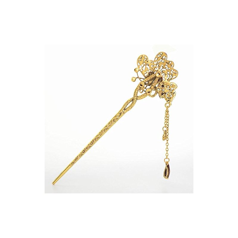 - Vintage Chinese Women's Crystal Flower and Butterfly Hair Stick