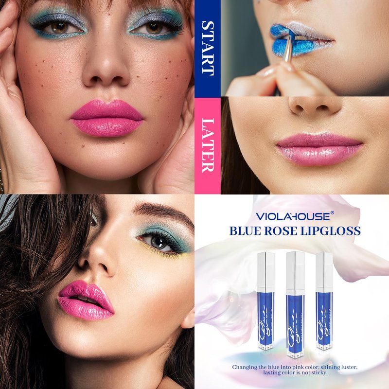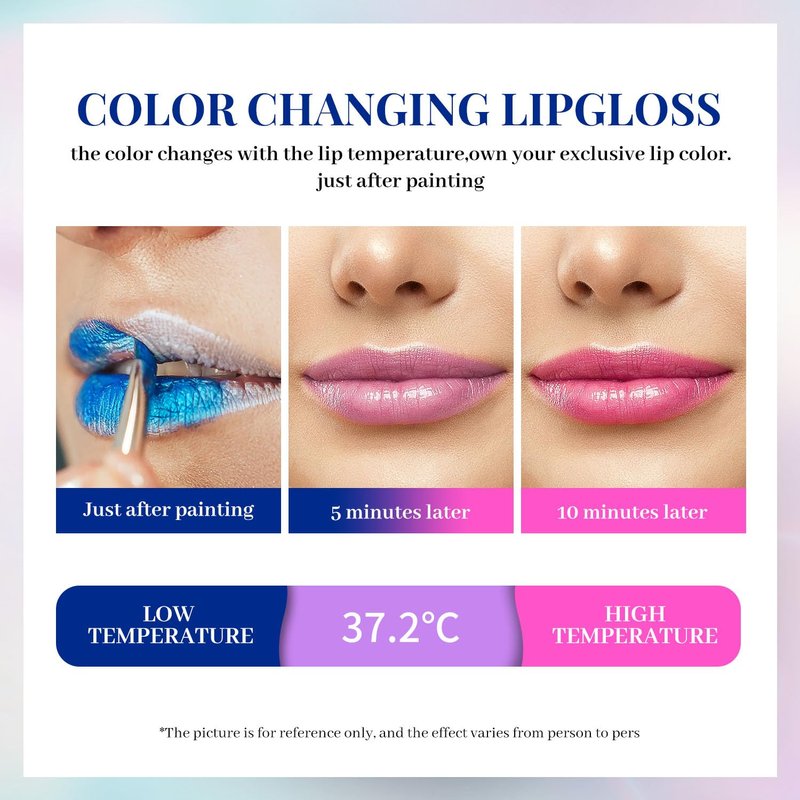 • 【2 Color Changing Lip Gloss】It is color changing lip gloss, blue changed to pink. Can according to the temperature and humidity of lips, adjust the depth of lip color. Glossy shine, durable color is not sticky.