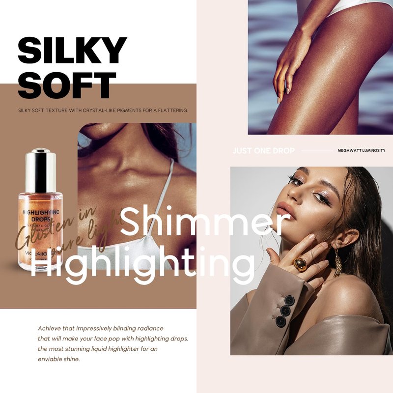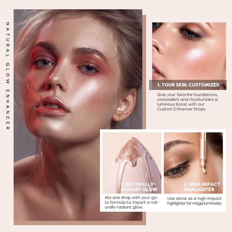- 【How to Use】Add 1-2 drops of Liquid Highlighter Drops into your favorite foundation - It can be used alone or mixed into foundations, primers and moisturizers. Ideal for all skin types.