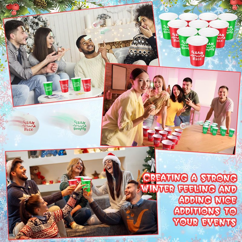 - Christmas Theme Decoration: the 22 holiday plastic cups feature festive prints like Team nice, Team naughty; The eye catching designs can enhance the holiday atmosphere, making any event more interesting and fun filled