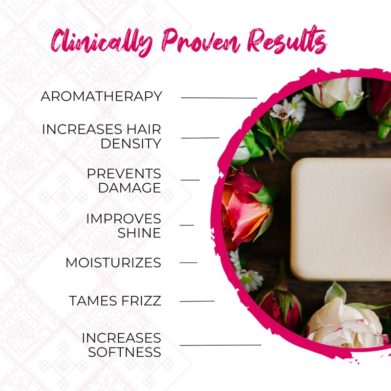 - Hydration & Conditioning: Infused with Chamomile and Pelargonium Graveolens Flower Extract, this bar deeply moisturizes and conditions, leaving hair silky, shiny, and tangle-free while preventing split ends