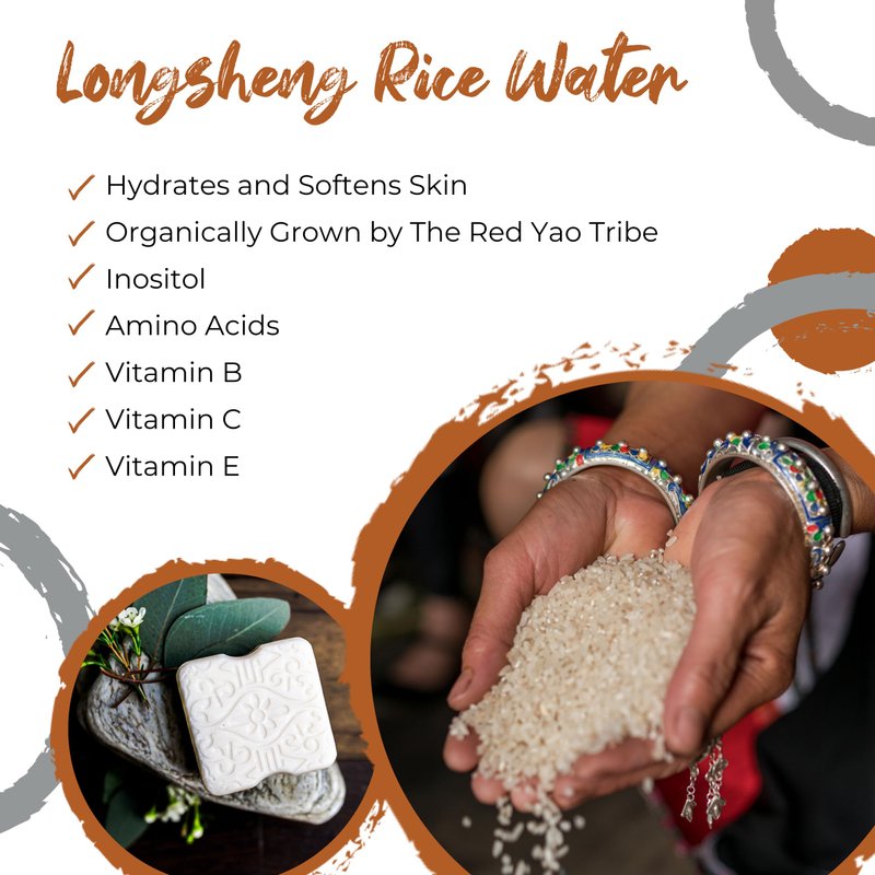 - Red Yao - Several years ago, we met the women of the Red Yao tribe in Longsheng, China. We noticed the amazing effects naturally grown Longsheng rice water has had on their skin from hand-rinsing their rice for each day’s meals and using the rice water to wash their hair.