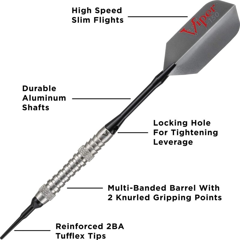 Viper V-Factor 90% Tungsten Soft Tip Darts with Storage/Travel Case, Ringed, 18 Grams