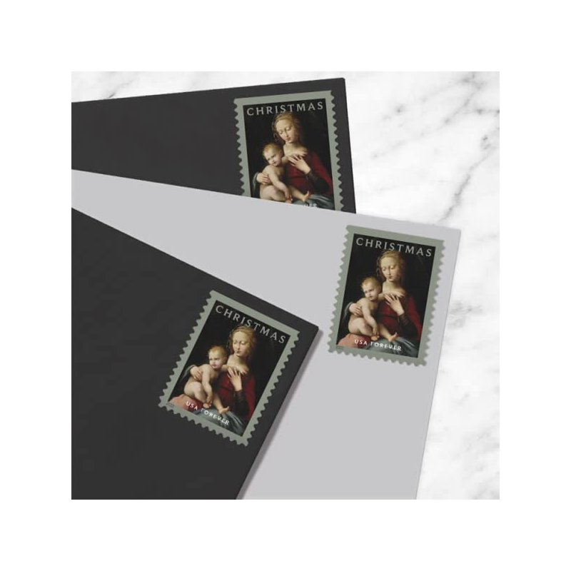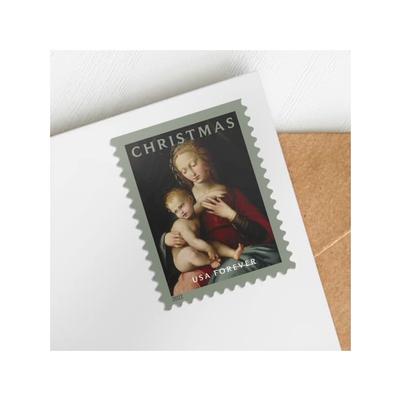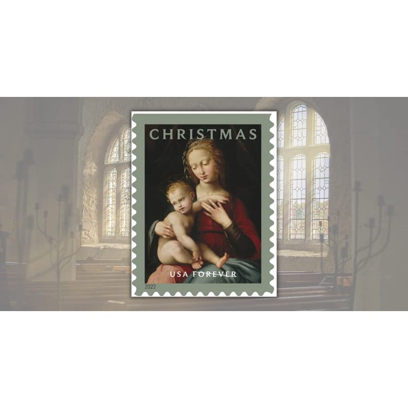 The painting was created by an unidentified Florentine artist known as the Master of the Scandicci Lamentation. The image depicts the Virgin Mary gazing downward at the infant Christ, one of her arms holding him protectively at his waist, the other tenderly touching his arm. The Christ child turns his head to look out of the frame to the left. The “Virgin and Child” painting is part of a collection at the Museum of Fine Arts, Boston. Greg Breeding, a USPS art director, designed the stamp, which will be available at Post Offices and usps.com.