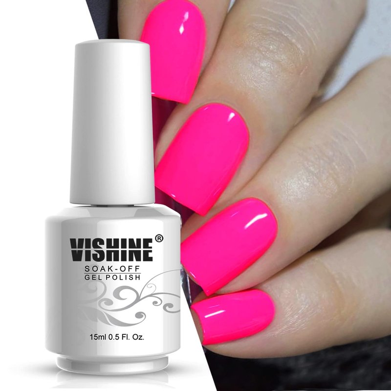 Vishine Nail Gel Polish, 15ml Soak Off Nail Gel Polish Nail Art Manicure Salon DIY at Home Long-lasting - Hot Pink 0.5 OZ