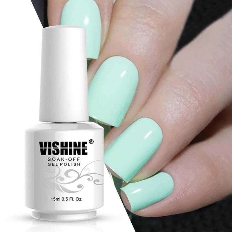 Vishine Nail Gel Polish, 15ml Soak Off Nail Gel Polish Nail Art Manicure Salon DIY Long-lasting, UV LED Lamp Required - Light Mint Green 0.5 OZ