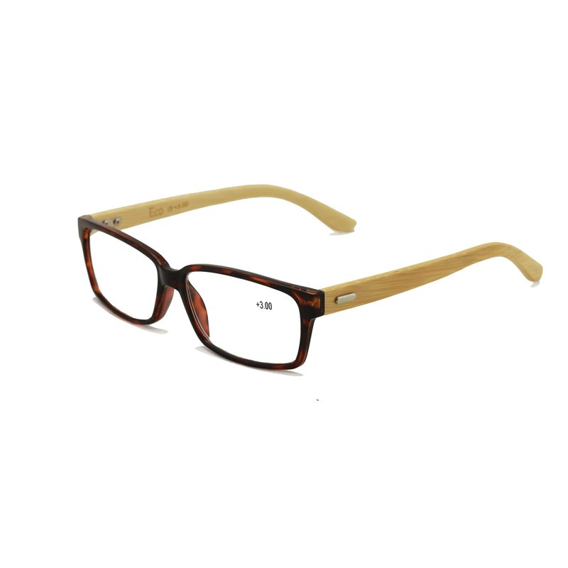 Vision World Genuine Bamboo Rectangular Reading Glasses Men Women Readers (Tortoise, 3 x)