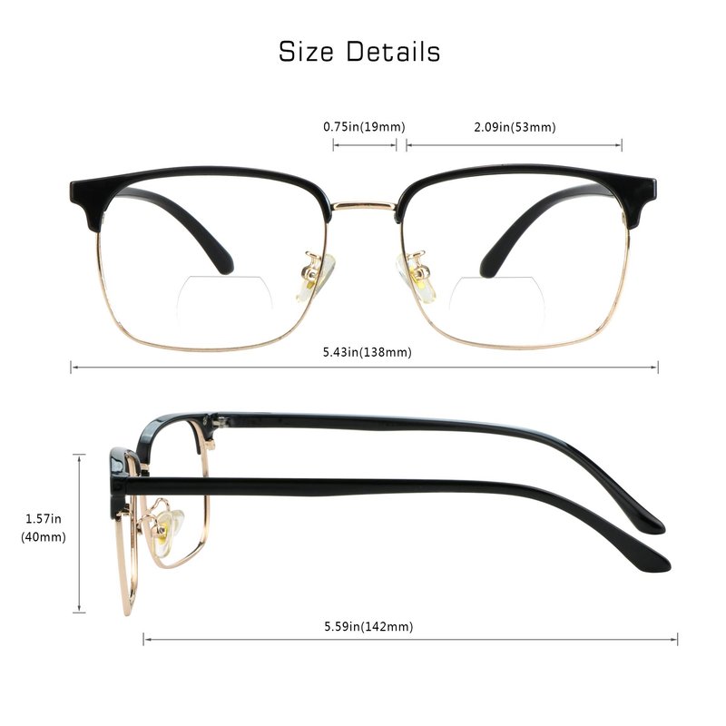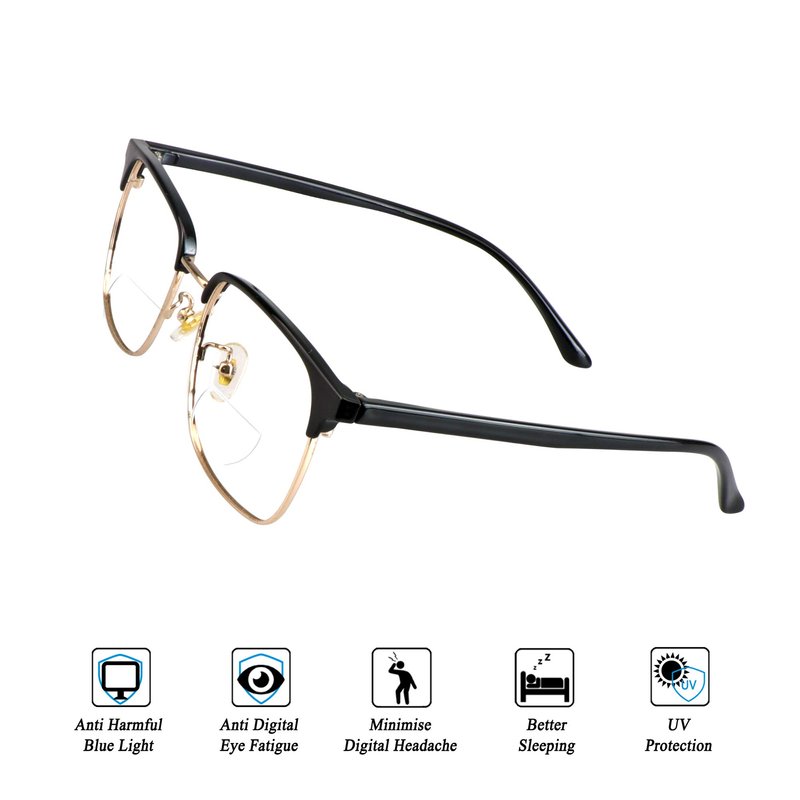 Bifocal reading glasses have unmagnified lenses which also contain inserts with the magnification of your choice in the lower portion of the lenses. This type of lens works best for those who are constantly switching from looking down at reading and writing materials to up and off at a distance.