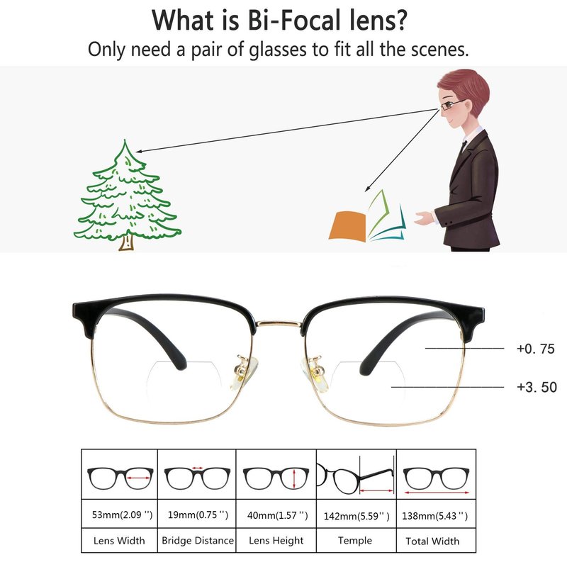 - Bifocal Reading Glasses - These lenses accommodate for both near and far vision by adding a unique lower lens with ADD vision value for reading and near vision.