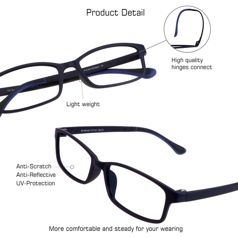 VisionGlobal Blue Light Blocking Glasses for Computer Reading or Gaming, UV 400 Anti Glare Lenses Help Reduce Eye Strain and Fatigue, Men and Women Frame, Multi-Magnification+1.50