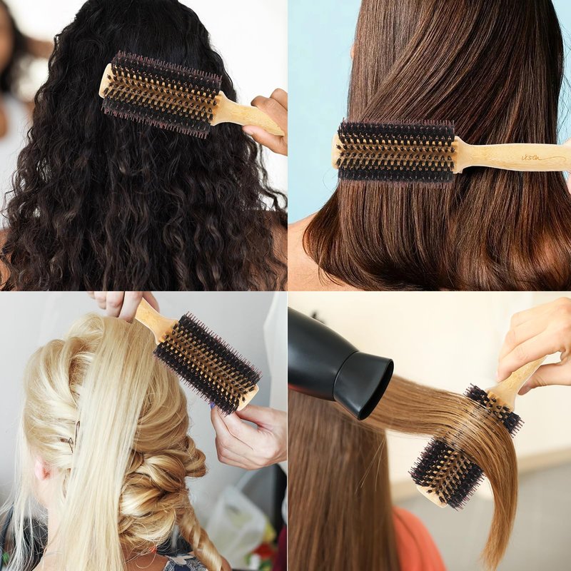 - Round Styling Hairbrush: a great round brushes for blow drying for styling hair for straight, curly brush for women, men, kids. The bigger size round hair brush is much more easy to style your hair.